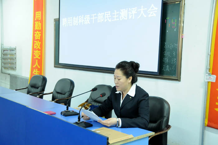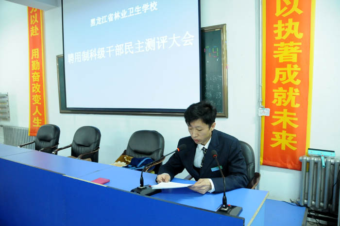 按照學(xué)校黨委關(guān)于聘用制干部推薦選拔任用工作程序的要求,我校于2月26日下午在多功能廳召開聘用制科級(jí)干部民主測(cè)評(píng)大會(huì),對(duì)三名聘用制科級(jí)干部進(jìn)行民主測(cè)評(píng)。我校領(lǐng)導(dǎo)黨委書記陳曉光、副校長(zhǎng)秦羽翎、副校長(zhǎng)孫秀敏、副校長(zhǎng)周文理、副校長(zhǎng)郎慶玲、全體正副科級(jí)干部、部門負(fù)責(zé)人及有關(guān)部門人員參加了大會(huì)。大會(huì)由黨委辦公室副主任朱楓主持。