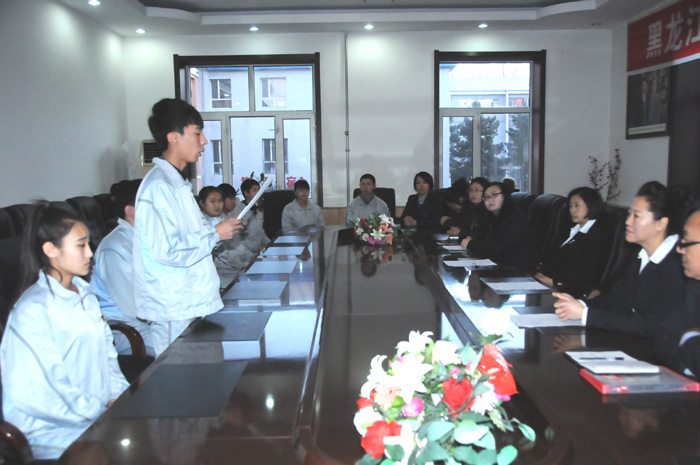 學生科科長孫可心宣讀受到共青團黑龍江省森林工業(yè)總局資助的學生名單及獲得我校黨員助學金資助學生名單