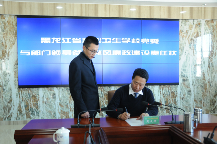 為認真落實“一崗雙責(zé)”責(zé)任制,充分發(fā)揮黨委的主體責(zé)任和紀檢監(jiān)察部門的監(jiān)督責(zé)任,3月21日上午,在護理實訓(xùn)樓三樓會議室學(xué)校黨委與各部門領(lǐng)導(dǎo)簽訂了黨風(fēng)廉政建設(shè)責(zé)任狀。