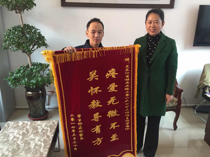 3月29日,16級口護(hù)3班學(xué)生楊嘉欣的父親,把寫有“疼愛無微不至,關(guān)懷教導(dǎo)有方”的錦旗送到第一年級辦主任韓偉和班主任萬忠珍手中,表達(dá)對學(xué)校和老師的感激之情。