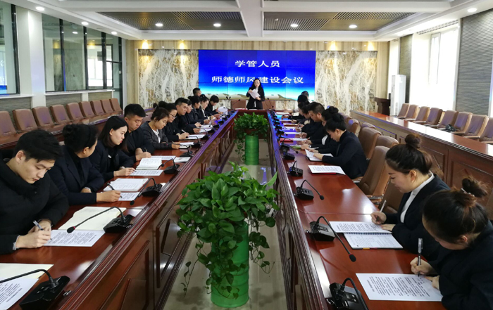 為響應學校關于師德師風建設的倡議,全面提高學管人員師德修養(yǎng),營造良好的育人環(huán)境。11月7日下午,學生科在實訓樓3樓會議室召開了學管人員師德師風建設會議,主校區(qū)學管人員參加會議,會議由學生科科長孫可心主持。