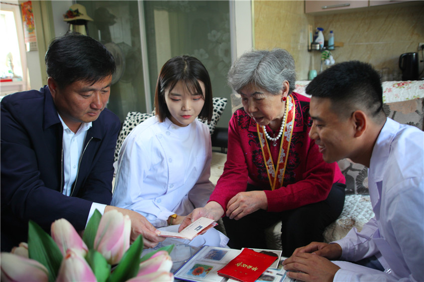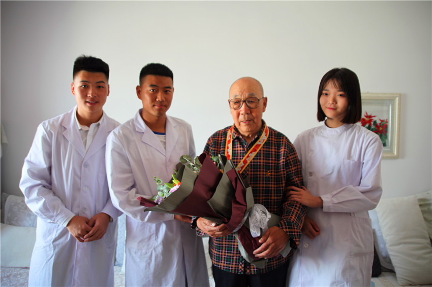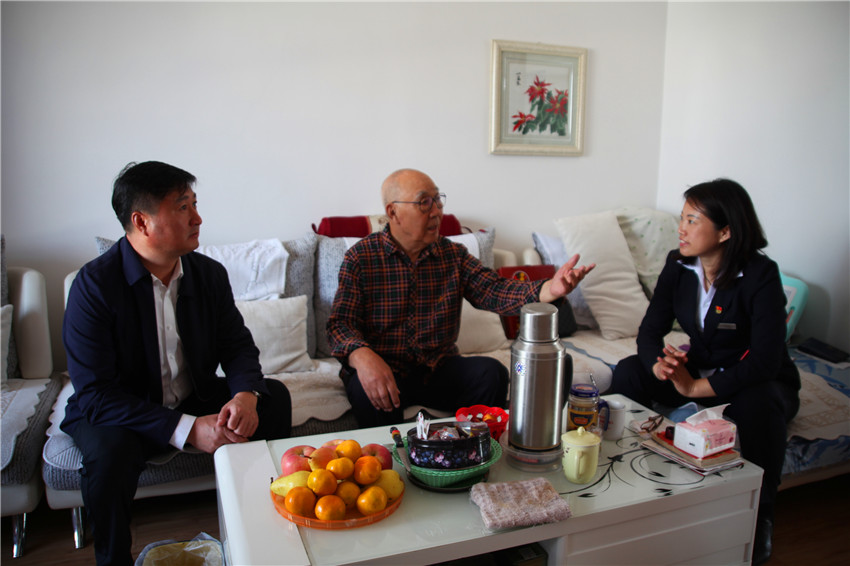 在新中國(guó)成立70周年和重陽(yáng)節(jié)即將到來之際,為表達(dá)對(duì)離休老干部的關(guān)愛。9月27日上午,我校黨委書記秦羽翎、校長(zhǎng)羅基保看望了離休老干部王靜嬡、陳瑞增、葛忠德,為他們送去了由中共中央、國(guó)務(wù)院、中央軍委頒發(fā)的“慶祝中華人民共和國(guó)成立70周年”紀(jì)念章,以表彰他們對(duì)職業(yè)教育發(fā)展做出的突出貢獻(xiàn)。同時(shí),也送上了上級(jí)黨委的慰問金和學(xué)校的節(jié)日慰問品。 在離休老干部家中,秦書記和羅校長(zhǎng)親切地握著老干部的手,向他們及其家屬致以節(jié)日的問候,親切詢問他們的身體狀況和生活情況,感謝他們?yōu)槁殬I(yè)教育發(fā)展、為林業(yè)衛(wèi)校發(fā)展作出的巨大貢獻(xiàn),并征求他們對(duì)學(xué)校發(fā)展的意見和建議,叮囑他們要保重身體,安享晚年。 離休老干部顧德和、王有德因住在外地,秦書記和羅校長(zhǎng)通過電話向他們表達(dá)了兩節(jié)的祝福,并向其子女轉(zhuǎn)達(dá)了節(jié)日慰問。 黨辦主任朱楓、校辦主任孔慶芳、宣傳部部長(zhǎng)崔海濤陪同慰問。