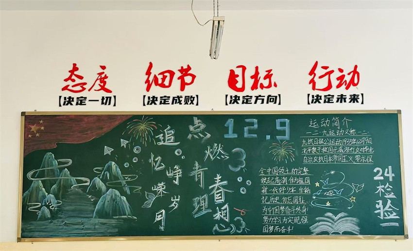 12月6日晚自習(xí),團(tuán)干部通過(guò)網(wǎng)絡(luò)搜集了更多“一二·九”運(yùn)動(dòng)相關(guān)的資料、歷史圖片、視頻等,在支部開(kāi)展了“追憶崢嶸歲月點(diǎn)燃青春理想”為主題的團(tuán)日活動(dòng)。同學(xué)們用詩(shī)歌、故事、朗誦、歌曲等多種形式,展示了愛(ài)國(guó)情懷。用畫筆,描繪一幅幅他們心中的“一二·九”運(yùn)動(dòng),表達(dá)了對(duì)革命先輩的敬仰和對(duì)祖國(guó)的熱愛(ài)。12月9日,正值周一升旗儀式,負(fù)責(zé)升旗的班級(jí)也通過(guò)國(guó)旗下演講,讓全校師生共同緬懷“一二·九”運(yùn)動(dòng)。