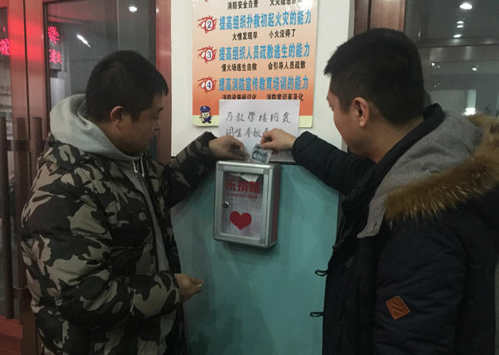 進(jìn)入冬季以來(lái),在學(xué)生科科長(zhǎng)孫可心的倡議下,全體學(xué)管教師為貧困學(xué)生進(jìn)行了愛心捐助。一年級(jí)辦積極響應(yīng)學(xué)生科的號(hào)召,于11月18日晚自習(xí)后,一年級(jí)辦主任韓偉帶領(lǐng)年級(jí)辦干事、班主任和部分學(xué)生代表,在一教大廳進(jìn)行了捐款箱的第二次開箱。