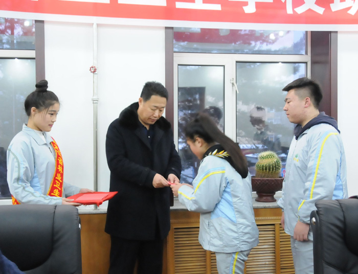 會上,黨委辦公室主任朱楓介紹了與會領(lǐng)導(dǎo);學(xué)生科科長孫可心宣讀了受資助的學(xué)生名單;副校長周文理向受資助學(xué)生發(fā)放了助學(xué)基金。今年共有12名同學(xué)共獲得助學(xué)金6000元。