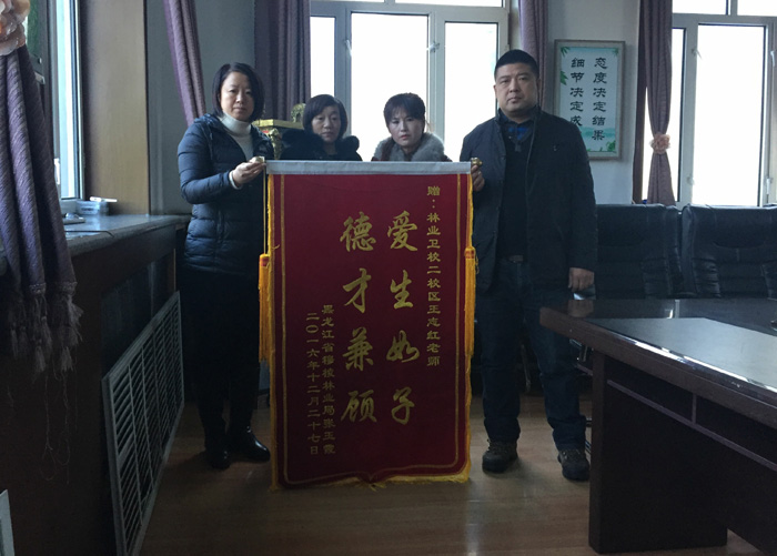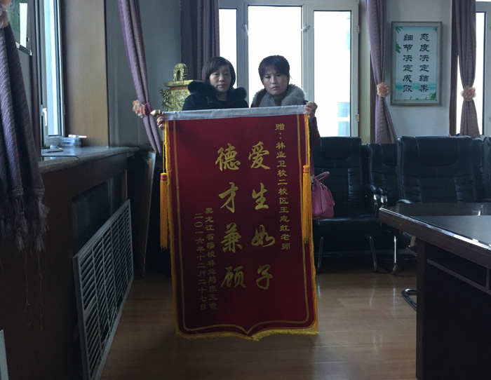 12月27日上午,黑龍江省林業(yè)衛(wèi)生學(xué)校第二校區(qū),一位家長(zhǎng)手持“愛生如子 德才兼顧”的錦旗和一封感謝信來到學(xué)校,對(duì)我校二校區(qū)班主任王志紅老師表達(dá)了誠(chéng)摯的謝意。