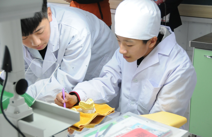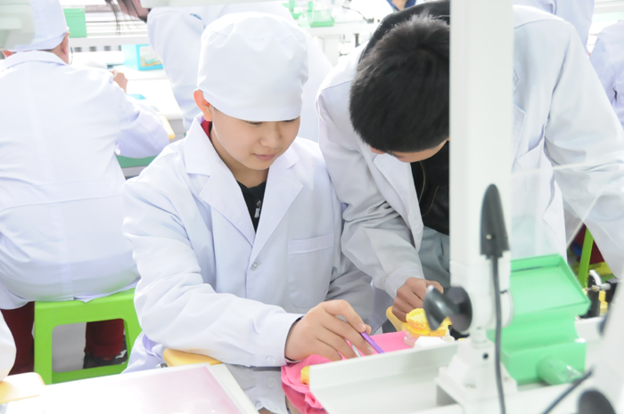 參觀實(shí)訓(xùn)樓后,敖其中學(xué)的同學(xué)們來到了我校實(shí)驗(yàn)樓,參觀了德標(biāo)項(xiàng)目實(shí)驗(yàn)室,深入了解了口腔工藝專業(yè)、口腔護(hù)理專業(yè)的工作場景以及眼鏡的制作過程。同學(xué)們的好奇心逐漸增強(qiáng),紛紛動(dòng)起手操作加入了體驗(yàn)的隊(duì)伍。