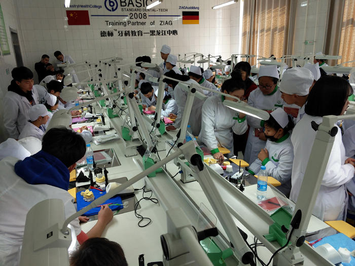 實(shí)踐課后,同學(xué)們參觀了我校德標(biāo)項(xiàng)目實(shí)訓(xùn)室,體驗(yàn)了我校德標(biāo)口腔修復(fù)工藝、德標(biāo)口腔護(hù)理及眼視光與配鏡專業(yè)學(xué)生的實(shí)訓(xùn)過(guò)程。最后,來(lái)到我校第三校區(qū)參觀了我校本科護(hù)理及涉外護(hù)理專業(yè)的教室,并來(lái)到第三校區(qū)七樓參觀了榮譽(yù)展廳,了解了我校涉外護(hù)理專業(yè)近年來(lái)取得的優(yōu)異成績(jī),以及涉外護(hù)理專業(yè)畢業(yè)生取得的發(fā)展成就。