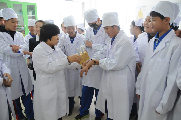 首先,我校帶領(lǐng)農(nóng)墾中學(xué)來(lái)到了我校的護(hù)理實(shí)訓(xùn)樓并更換了護(hù)士服,使其更能身臨其境地體驗(yàn)護(hù)士這個(gè)職業(yè)。在參觀的過(guò)程中,農(nóng)墾中學(xué)的同學(xué)們觀看了我校學(xué)生的實(shí)訓(xùn)過(guò)程,并在實(shí)訓(xùn)教室內(nèi)觀看了我校的熏艾草、拔火罐等實(shí)訓(xùn)操作。
