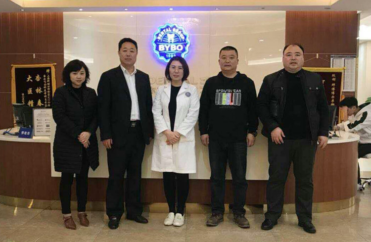 我校領(lǐng)導(dǎo)與拜博口腔醫(yī)院領(lǐng)導(dǎo)合影
