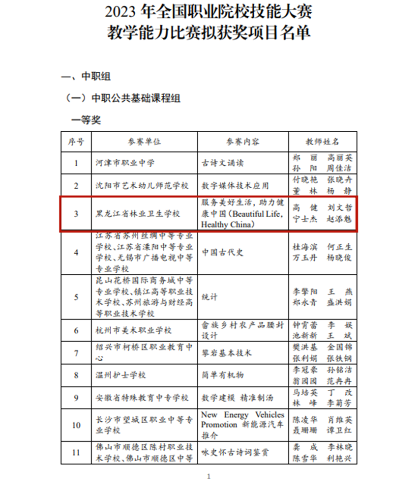 近日,教育部舉辦的2023年全國(guó)職業(yè)院校技能大賽教學(xué)能力比賽決賽在江西南昌落下帷幕。經(jīng)網(wǎng)絡(luò)初評(píng)和決賽評(píng)審,大賽共產(chǎn)生一等獎(jiǎng)98個(gè),二等獎(jiǎng)180個(gè),三等獎(jiǎng)266個(gè)。我校高健、劉文哲、寧士杰、趙添魅四名英語(yǔ)教師組成的教學(xué)團(tuán)隊(duì)以作品《服務(wù)美好生活,助力健康中國(guó)》在全國(guó)37支省市級(jí)代表隊(duì),784所職業(yè)院校,908個(gè)教學(xué)團(tuán)隊(duì)中脫穎而出,榮獲中職公共基礎(chǔ)課程組一等獎(jiǎng)。黑龍江省林業(yè)衛(wèi)生學(xué)校成為兩年來(lái)黑龍江省蟬聯(lián)國(guó)賽一等獎(jiǎng)的唯一中職學(xué)校! 全國(guó)職業(yè)院校技能大賽教學(xué)能力比賽是我國(guó)唯一由教育部主辦的教師競(jìng)賽,是全國(guó)職業(yè)院校教師追求的最高獎(jiǎng)項(xiàng)。大賽堅(jiān)持“以賽促教、以賽促學(xué)、以賽促改、以賽促研”的初衷,對(duì)全面提升職業(yè)院校教師師德踐行能力、專業(yè)教學(xué)能力、數(shù)字素養(yǎng)水平、綜合育人能力和自主發(fā)展能力,著力打造高水平、結(jié)構(gòu)化教師教學(xué)創(chuàng)新團(tuán)隊(duì)具有重要意義。今年的大賽吸引了全國(guó)20萬(wàn)余名教師參賽。 自今年初啟動(dòng)備賽以來(lái),學(xué)校領(lǐng)導(dǎo)高度重視,多次赴備賽現(xiàn)場(chǎng)和決賽現(xiàn)場(chǎng)給予鼓勵(lì)。學(xué)校分別從線下培訓(xùn)、線上指導(dǎo)、現(xiàn)場(chǎng)模擬、后勤保障等方面,為備賽團(tuán)隊(duì)提供了多形式、全方位的服務(wù)支持。備賽期間,團(tuán)隊(duì)教師不辭辛苦、主動(dòng)擔(dān)當(dāng),克服重重困難,反復(fù)打磨參賽作品,經(jīng)過(guò)校賽、省賽、國(guó)賽一路披荊斬棘,在決賽賽場(chǎng)上全面展示了良好的職業(yè)素養(yǎng)、扎實(shí)的教學(xué)能力和綜合全面的數(shù)字素養(yǎng)。 據(jù)了解,今年黑龍江省林業(yè)衛(wèi)生學(xué)校師生大賽成果頗豐。學(xué)生劉子瑞、齊鈺榮獲2023年全國(guó)職業(yè)院校技能大賽中職組護(hù)理技能賽項(xiàng)一等獎(jiǎng);教師高航、高雨生榮獲2023年黑龍江省職業(yè)院校技能大賽中等職業(yè)學(xué)校班主任能力比賽一等獎(jiǎng); 康復(fù)團(tuán)隊(duì)、英語(yǔ)團(tuán)隊(duì)榮獲2023年黑龍江省職業(yè)院校技能大賽教學(xué)能力比賽中職專業(yè)技能課程和中職公共基礎(chǔ)課程組一等獎(jiǎng);思政—哲學(xué)與人生團(tuán)隊(duì)、思政—中國(guó)特色社會(huì)主義團(tuán)隊(duì)榮獲黑龍江省職業(yè)院校技能大賽中等職業(yè)學(xué)校德育與思想政治教育有關(guān)賽項(xiàng)比賽一等獎(jiǎng)。 大賽成績(jī)的取得,彰顯了學(xué)校“三教”改革的實(shí)踐成果,也是對(duì)教師教學(xué)能力的檢驗(yàn)。學(xué)校也將以大賽為契機(jī),以賽促教,以賽促研,培養(yǎng)有理想信念、有道德情操、有扎實(shí)學(xué)識(shí)、有仁愛(ài)之心的四有好教師,打造高水平教師隊(duì)伍,持續(xù)推動(dòng)課堂革命,培養(yǎng)高素質(zhì)護(hù)理人才。