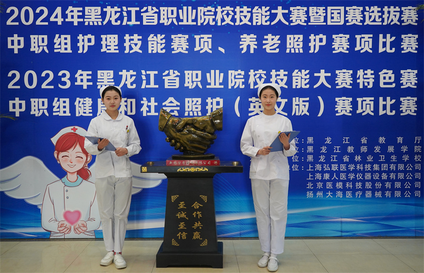12月22日—12月23日,2023年黑龍江省職業(yè)院校技能大賽特色賽中職組“健康和社會照護(英文版)”賽項,2024年黑龍江省職業(yè)院校技能大賽暨國賽選拔賽中職組“護理技能”賽項和“養(yǎng)老照護”賽項,在黑龍江省林業(yè)衛(wèi)生學校舉行。 “健康和社會照護(英文版)”賽項以老年人服務為中心,本大賽以世界技能大賽為引領,以世界技能大賽相關技術標準為基礎,以培養(yǎng)選拔世賽選手和高技能人才為目標,綜合考核選手基本知識水平及各項技能及應用。競賽內容分為三個場景,分別考核在醫(yī)院場景、家庭場景和長期照護的健康與社會照護技能;每個場景準備1個案例,每個案例分為 3個部分,分別是計劃部分、實踐部分,以及健康教育海報或反思報告部分,重點考核選手的文字表達能力、動手操作能力、溝通交流能力。共有3個參賽團隊10名選手參加比賽,我校選手李圓獲得一等獎,王宇獲得二等獎,周杉杉、殷子怡獲得三等獎。 “護理技能”賽項促進“崗課賽證” 融通,引導護生崇尚嚴謹細致、精益求精的職業(yè)精神,培養(yǎng)具有臨床決策能力、綜合護理技術操作能力、人際溝通能力、團隊協(xié)作能力和較 強崗位勝任力的臨床護理人才。競賽設置理論競賽、技能競賽兩個模塊。技能競賽包括呼吸心跳驟;颊呔茸o和老年患者跌倒的照護兩個賽道。共有10個參賽團隊40名選手參加比賽,我校選手宋清圓、王光澤、劉萌、孫菲獲得一等獎。 “養(yǎng)老照護”賽項以老年人服務為中心,全面構建學生基于典型工作任務的核心技能、職業(yè)素養(yǎng)和人文關懷的職業(yè)勝任能力。賽項設計為兩個工作場景和生活照護、基礎照護、康復照護、照護方案書寫四個競賽模塊。在1份案例單中,選手完成生活照護、基礎照護、康復照護三個模塊綜合實操、照護方案制定全部工作任務,理論實踐相融,理實一體。共有3個參賽團隊11名選手參加比賽,我校選手高杰獲得一等獎,劉倩茹、解欣雨獲得二等獎,周雅琪獲得三等獎。 此次大賽黑龍江省林業(yè)衛(wèi)生學校參賽選手包攬所有一等獎獎項,成績的取得,是學校堅持落實"以德技雙馨為培養(yǎng)目標,以就業(yè)為導向”的辦學思想,不斷深化中等職業(yè)學校教育教學改革,培養(yǎng)學生動手實踐能力, 凸顯職業(yè)教育專業(yè)特色教學成果的具體體現(xiàn)。 黑龍江省林業(yè)衛(wèi)生學校多年來始終堅持“以賽促教、以賽促學、以賽促改、以賽促建”,深化了職業(yè)教育教學改革,推動了產教融合,校企合作,促進了人才培養(yǎng)和產業(yè)發(fā)展的結合,擴大了職業(yè)教育的國際交流,增強了職業(yè)教育的影響力和吸引力,為廣大師生展示風采、追夢圓夢提供了廣闊舞臺,國家輸送更多優(yōu)秀畢業(yè)生。