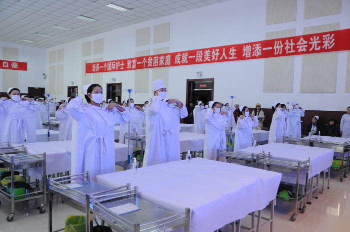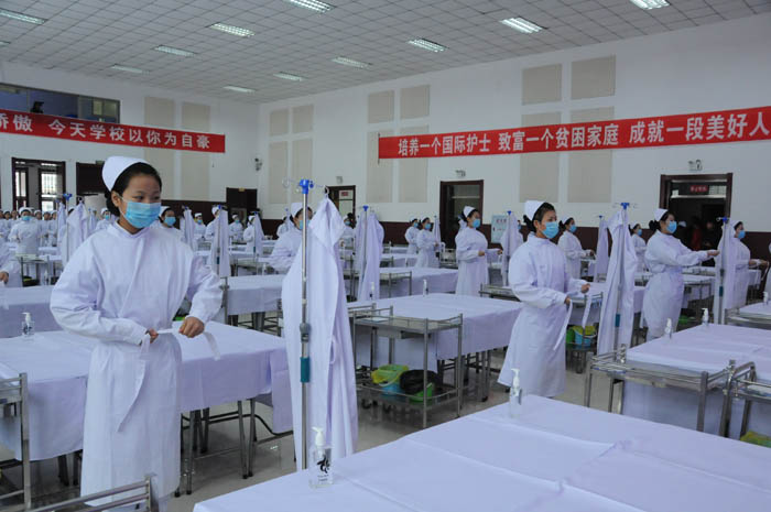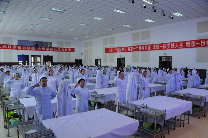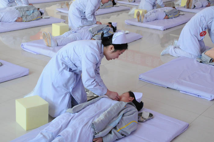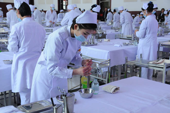 大賽的準備階段,學校領導就提出了“過程比結果更重要”的指導思想,提出要狠抓大賽前的技能訓練工作。教務科、學生科、各校區(qū)等相關部門對大賽十分重視,護理專業(yè)教師和班主任利用一切能夠利用的時間進行訓練,有的班級甚至訓練的凌晨。