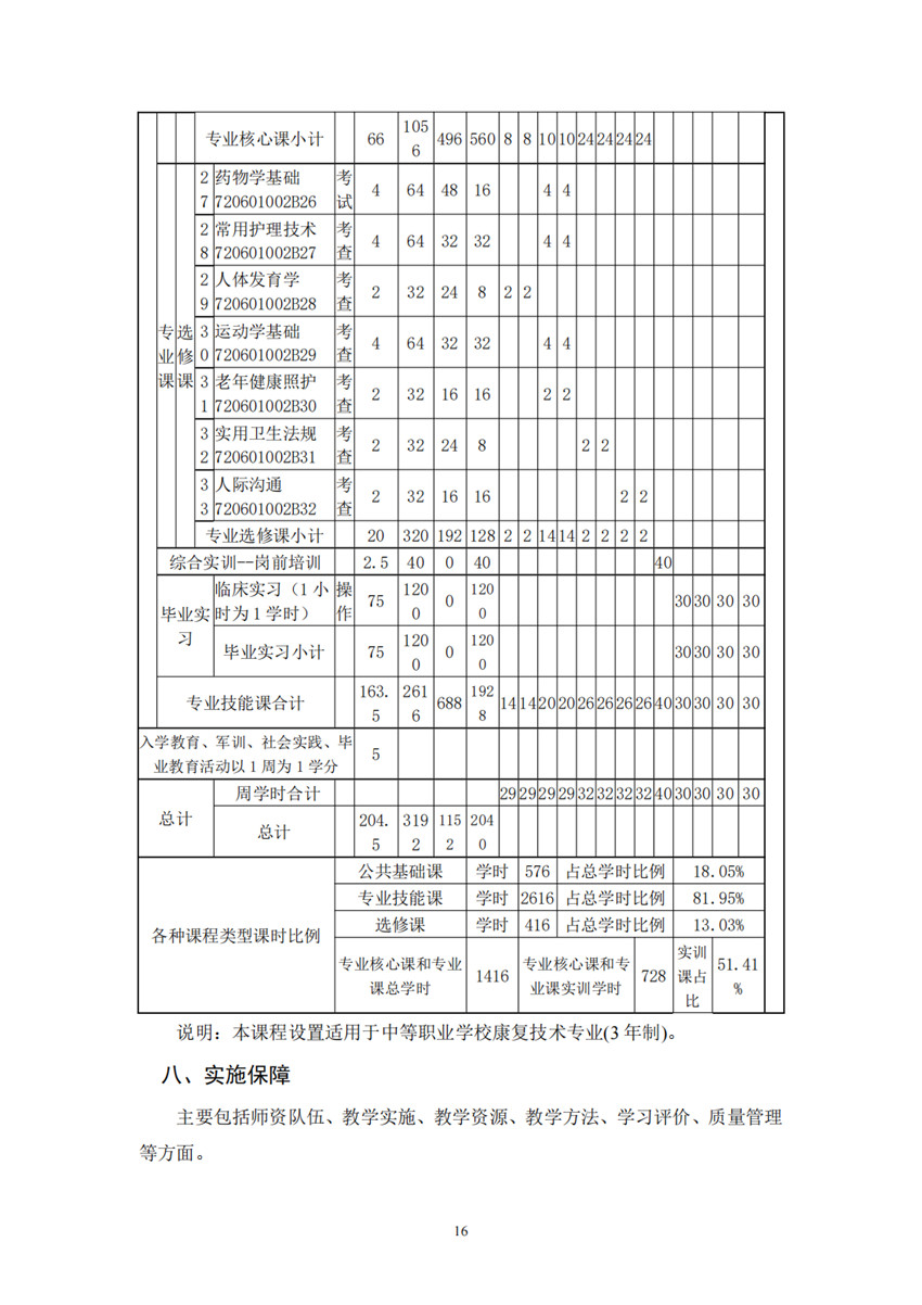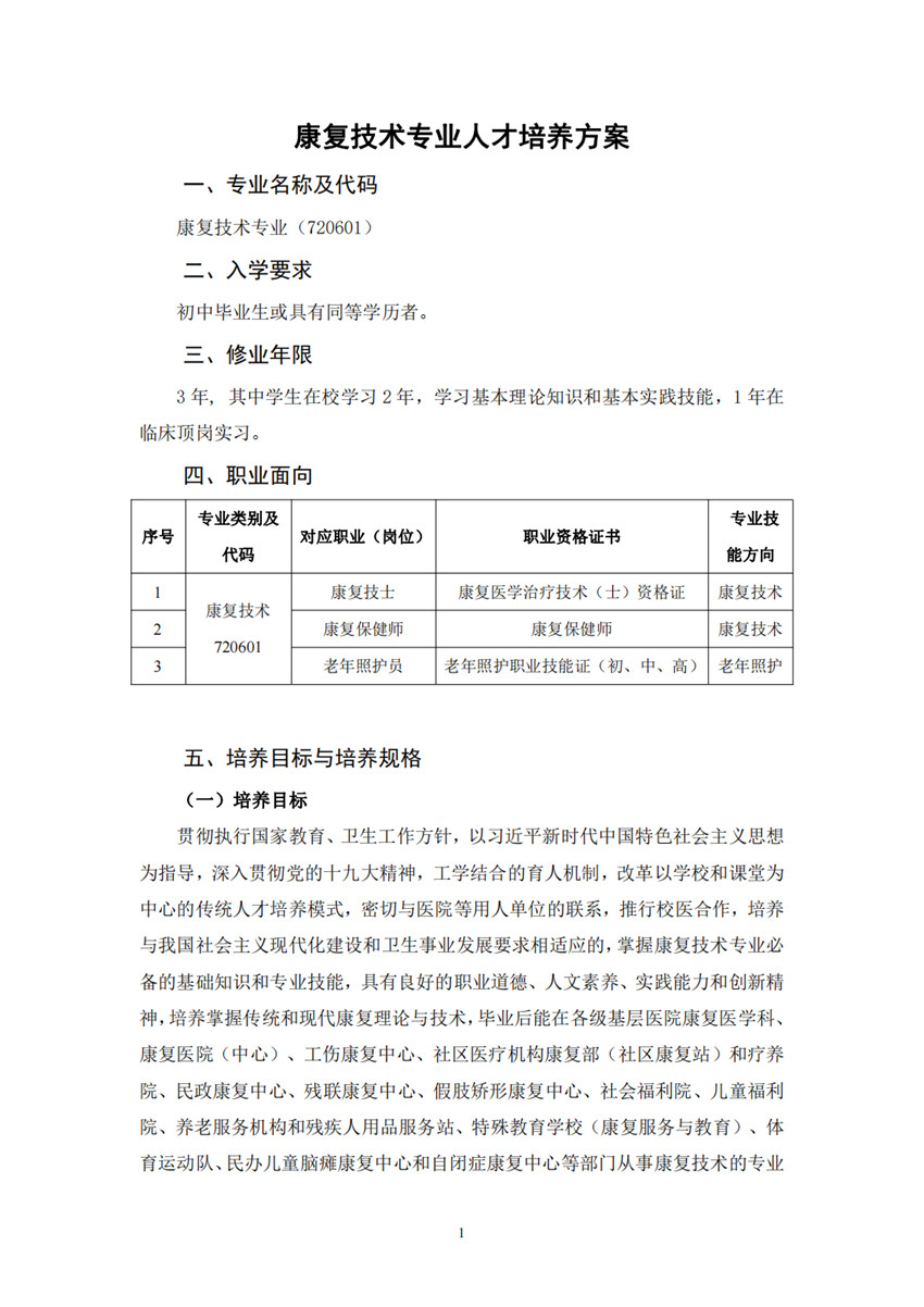 佐證材料:中等職業(yè)學校康復技術(shù)專業(yè)人才培養(yǎng)方案