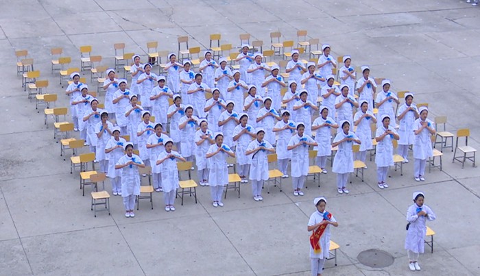 會上,共有32個參賽團隊分別從護(hù)士的微笑、站姿、坐姿、走姿、蹲姿、鞠躬禮等方面進(jìn)行了匯報展示。場上,同學(xué)們穩(wěn)健整齊的步伐、響亮的口號、自信的笑容、優(yōu)美的身姿、獨具創(chuàng)意的表演無不展示了我校學(xué)子知禮儀、懂禮儀、講禮儀的醫(yī)學(xué)生形象。